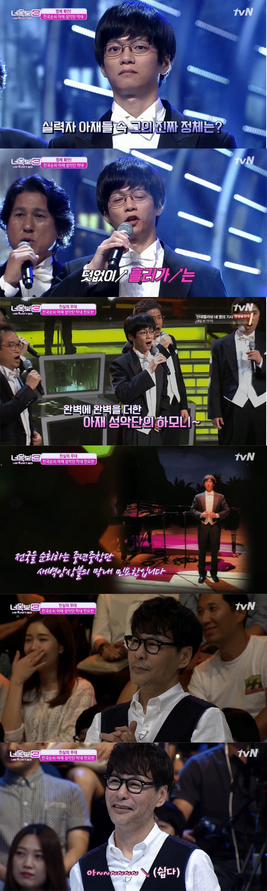 하지만 윤상의 생각과 달리 아재성악단 막내는 진짜 실력자였다. 앞서 루치아노 파바로티의 '네순 도르마'를 선보였던 아재성악단 막내는 추가로 등장한 4명의 아재성악단과 함께 윤상의 '이별의 그늘' 성악 버전을 열창했다. 윤상은 눈앞에 펼쳐진 역대급 무대에 말을 잇지 못하며 아쉬워했다.