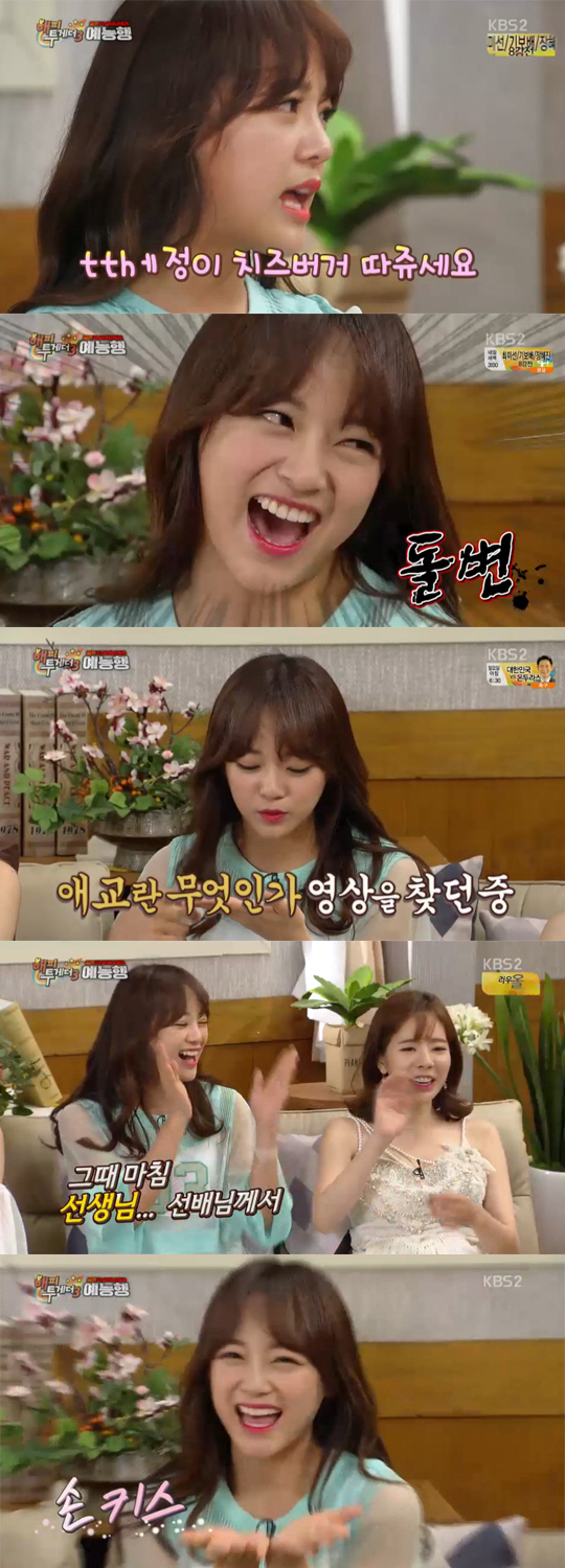 세정은 11일 KBS2 '해피투게더3-끝까지 살아남아라 예능행' 특집에 출연했다. 이날 방송은 '왕언니' 소녀시대 써니부터 exid 솔지, 멜로디데이 차희, 라붐 솔빈, 여자친구 예린, 구구단 세정까지 걸그룹 대표선수들이 출연했다.