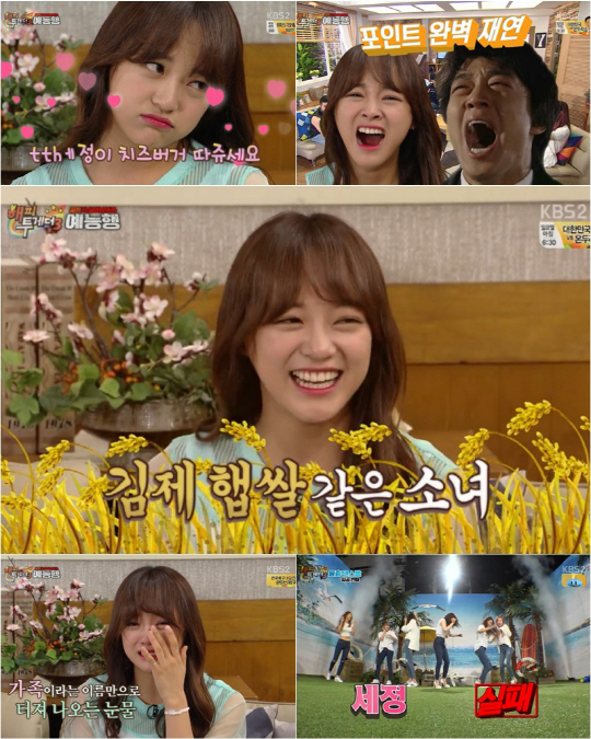 [스포츠조선닷컴 정안지 기자]이래서 사람들이 '갓세정 갓세정~' 하나보다. 구구단의 김세정이 '해피투게더3'에서 진국 매력을 폭발시키며 시청자들의 마음을 사로잡았다.