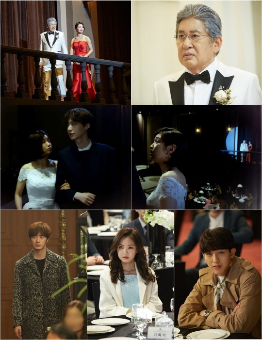 사건의 주인공은 다름 아닌 현민. 현민은 강회장의 결혼식에 웨딩드레스를 입은 하원을 약혼녀로 데리고 와 하객들을 깜짝 놀라게 만들고 있다. 그리고 이 황당한 상황을 지운이 날 선 눈빛으로 지켜보고 있어 스펙터클한 결혼식이 그려질 것을 예고한다.