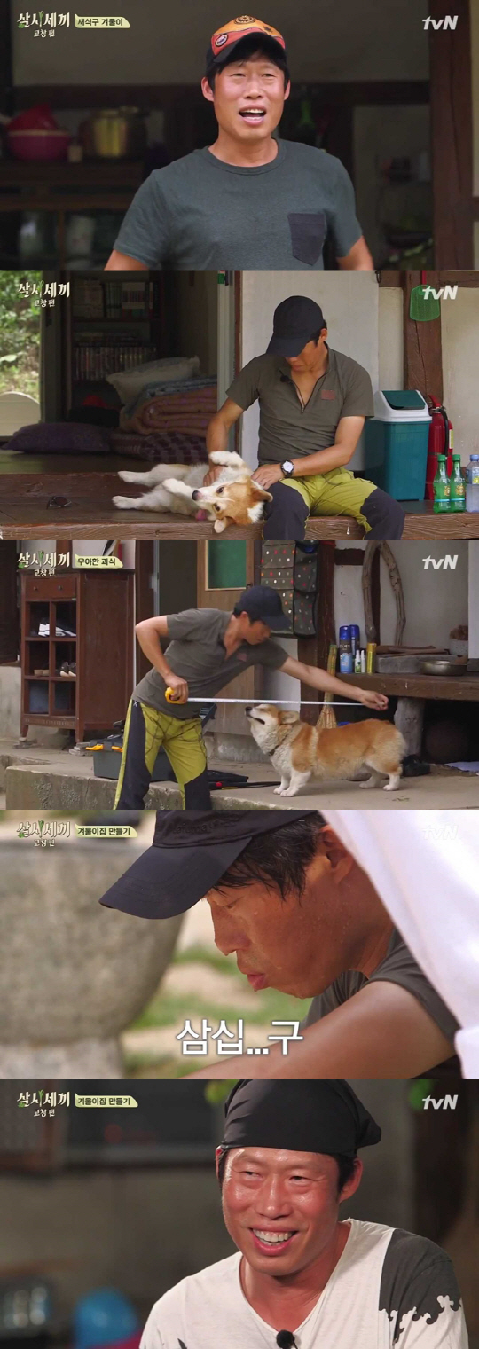 이쯤 되면 정말 못 하는 게 없는 유해진이다. 한껏 진지한 표정과 알 수 없는 수치를 중얼거리던 유해진은 못 박을 간격을 체크한 후 칼같이 간격에 맞춰 설계를 시작했다. 애정을 듬뿍 담아 넓고 안락한 집을 지어주었고 직접 이름을 적고 그림까지 그려주는 등 집을 더욱 아기자기하게 꾸며주는 다정한 모습을 보였다.