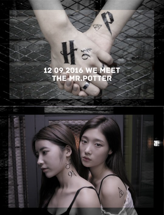 14일 오전 다이아의 공식 SNS를 통해"12 09 2016 WE'MEET THE MR.POTTER DIA"라는 글이 적혀진 사진 한장이 게재됐다. 공개된 사진에는 다이아의 멤버 정채연과 기희현이 파격적인 자태로 서로의 몸에 기댄 모습이 담겨 있다. 이들은 독특한 문양이 새겨진 타투를 몸에 한 채 몽환적인 분위기를 자아내고 있다.