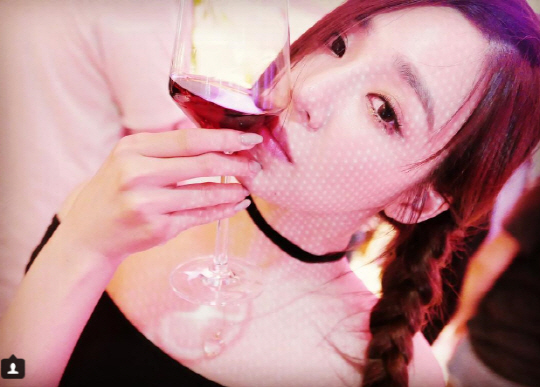 수영이 공개한= 사진에는 티파니가 와인잔을 들고 그윽히 카메라를 응시하는 모습이 담겨있다.