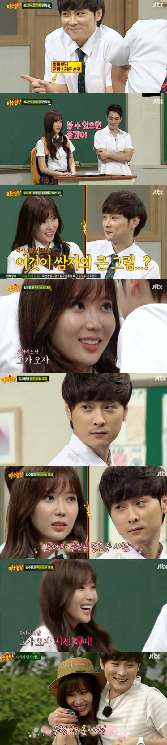 [스포츠조선닷컴 김영록 기자]'아는형님' 민경훈과 배우 임수향이 잔망스런 커플 분위기를 연출했다.
