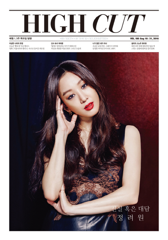 한편 정려원의 뷰티 화보는 8월 18일 발간되는 '하이컷' 180호를 통해 만날 수 있다. 또 23일 발행되는 '디지털 하이컷' 어플을 통해 지면에선 볼 수 없는 생동감 넘치는 화보와 영상을 감상할 수 있다. 애플 앱스토어와 구글 플레이에서 하이컷, 혹은 high cut을 검색한 뒤 '디지털 하이컷' 어플을 다운로드 받으면 된다.