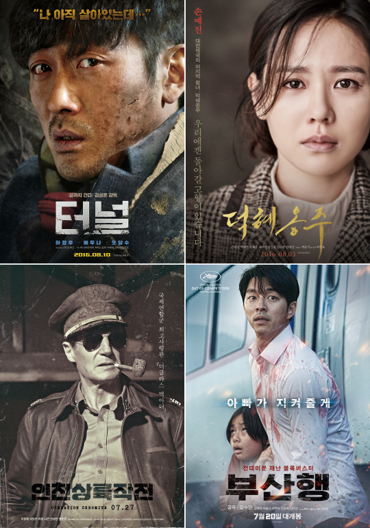 soulhn1220@sportschosun.com 사진=영화 '터널' '덕혜옹주' '인천상륙작전' '부산행' 포스터