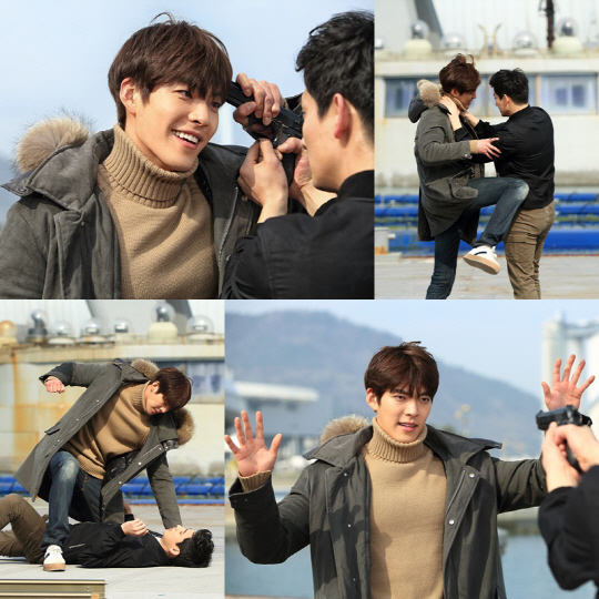 특히 김우빈은 윤박에게 주먹을 강타하는 액션을 위해 액션 팀과 꼼꼼하게 합을 맞춰보며 준비를 해나갔다. 또한 김우빈은 생동감 넘치는 장면을 위해 윤박과 상의, 여러 가지 애드리브를 만들어내는 등 실감나는 열연을 펼쳤다. 윤박이 권총을 김우빈에게 겨누면 김우빈이 총구에다가 머리를 갖다 들이대는 장면. 괜찮냐고 묻는 윤박에게 김우빈은 "생각보다 조금 아프다"며 웃음을 유발하기도 했다. 뿐만 아니라 김우빈은 특별출연으로 현장에 온 윤박을 세심하게 배려하는 모습으로 현장을 훈훈하게 했다.