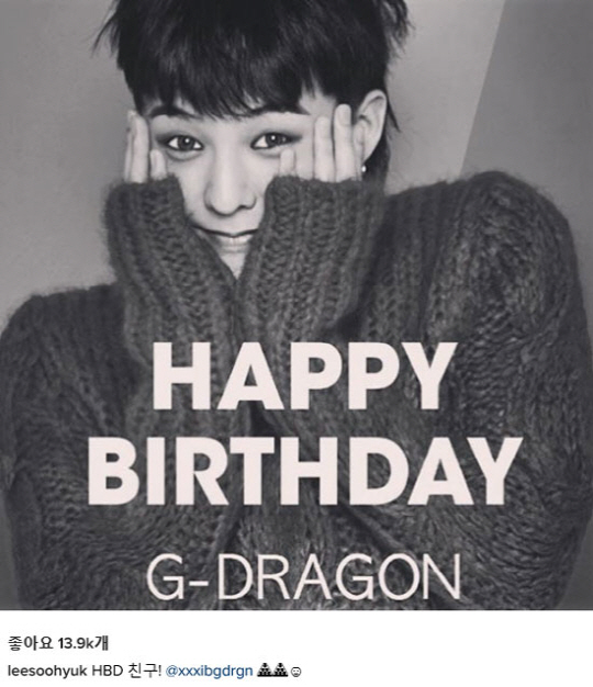 "HBD 친구"…이수혁, 지드래곤 생일축하 '절친인증'