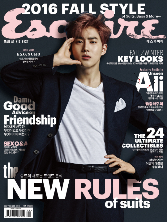 수호의 멋진 모습이 담긴 화보와 솔직한 이야기가 담긴 인터뷰는 '에스콰이어' 2016년 9월호에서 확인할 수 있다.