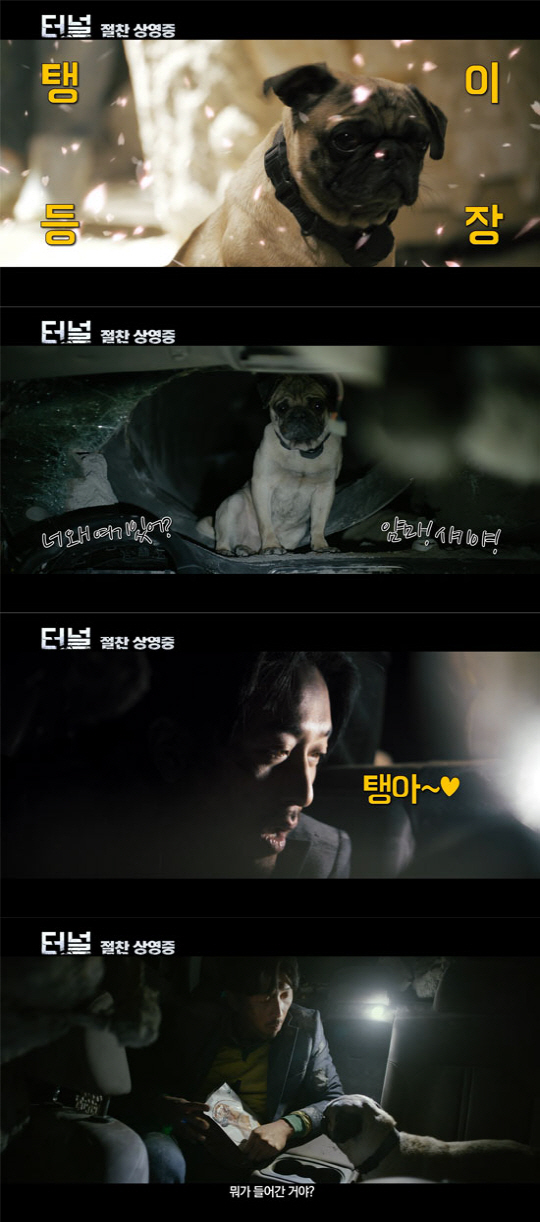 한편, 영화 '터널'이 400만 관객 돌파를 기념해 하정우의 터널 안 웃픈 생존기를 함께한 탱이 영상을 깜짝 공개했다. 공개된 영상에는 관객들로부터 명장면으로 꼽히는 '정수'와 '탱이'의 첫만남부터, 개사료 나눔 먹방까지 모두 담겨 있어 눈길을 끈다. 또한 극 중 강아지에게 까칠한 모습을 보이는 '정수'와 달리, 평소 하정우는 강아지를 향해 "탱아~♥"라며 다정다감하게 부르는가 하면 대기 시간을 틈타 달리기를 함께 하는 등 특급 케미스트리를 발산, 보는 이들로 하여금 절로 미소 짓게 만든다.