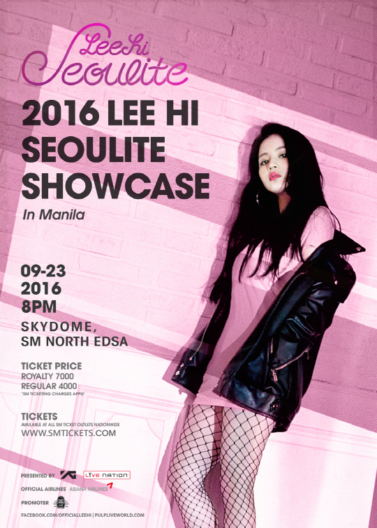 이하이는 오는 9월 23일 필리핀 마닐라 'SKYDOME, SM NORTH EDSA', 9월 25일 홍콩 'Music Zone, KITEC'에서 '2016 LEE HI SEOULITE SHOWCASE'를 진행한다.