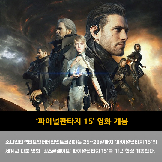 소니인터랙티브엔터테인먼트코리아는 25~28일까지 '파이널판타지 15'의 세계관 다룬 영화 '킹스글레이브: 파이널판타지 15'를 기간 한정 개봉한다.