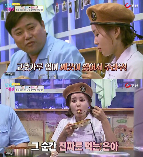 김은아는 양준혁의 예상을 깨고 떡볶이를 냉큼 먹었다. 이어 그는 양준혁이 입으로 씻어낸 떡볶이를 연달아 먹으며 "떡, 더 씻어라"고 훈수까지 둬 양준혁을 당황하게 했다. <스포츠조선닷컴>