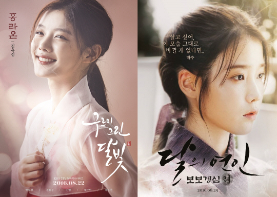김유정과 이지은(아이유)이 사극으로 맞붙는다. 김유정은 KBS2 월화극 '구르미 그린 달빛'으로, 아이유는 SBS 월화극 '달의 연인-보보경심 려(이하 보보경심)'으로 돌아온다. 두 작품 모두 판타지 사극 장르를 표방하고 있는 만큼, 여주인공의 대결 결과에도 관심이 쏠린다. 과연 마지막에 웃는 사람은 누구일까.