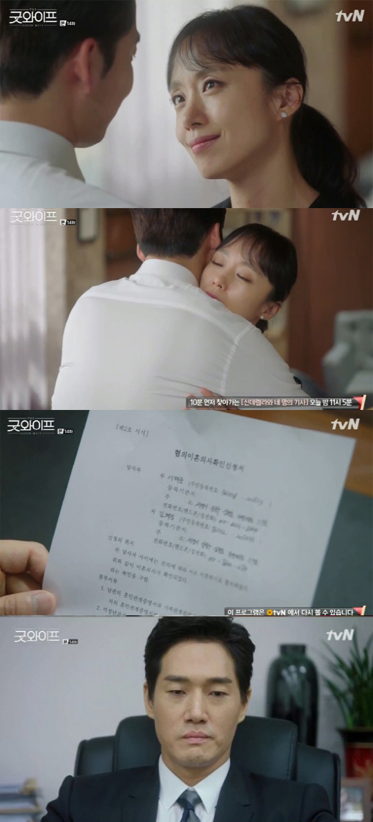 20일 방송한 '굿와이프'에서는 딸 실종 사건을 겪고 가족의 안전에 안도감을 느낀 김혜경이 오히려 이태준에게 이혼서류를 내밀고, 서중원을 선택하는 결말이 그려졌다.