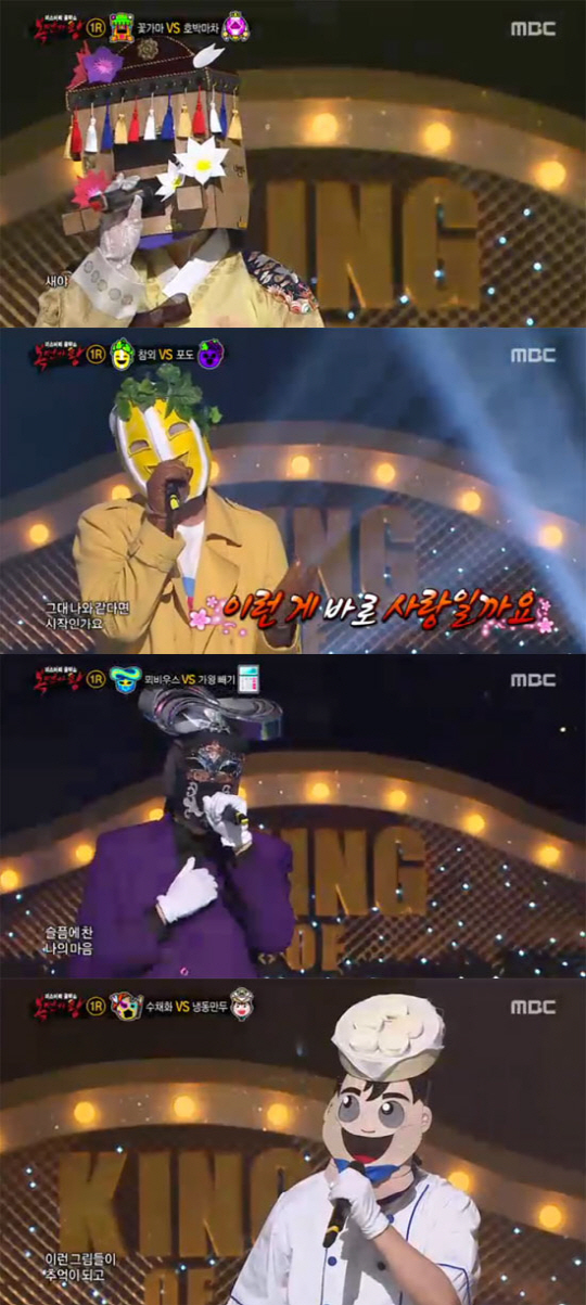 두 번째 대결은 '포도'와 '참외'가 풋풋한 첫 사랑의 설렘을 담아 '사랑인가요'를 불렀다. '포도'는 상큼한 목소리로 귀를 집중 시켰다. 깨끗하고 맑은 음색을 보이는 '포도'에게 '참외'는 달콤한 꿀 미성을 더해 환상적인 하모니를 만들어냈다.