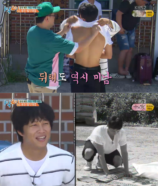 [스포츠조선닷컴 김준석 기자] '1박2일' 박보검이 용돈 벌기 대결을 위해 뒤태를 공개했다.
