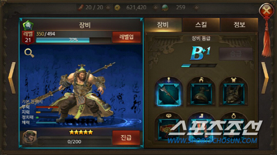 게임의 전반적인 흐름은 과거 중국시장에서 유행했던 도탑전기의 비즈니스 모델을 바탕으로 이어진다. 유저는 각 장수를 스테이지 클리어 혹은 결제로 뽑아야하며 장수들의 성장을 장비와 조각 모음으로 이어가야 한다. 장비의 성장은 스테이지 반복으로 재료를 수급하면서 연계되고 조각 모음은 일반 모드 클리어 후 열리는 무쌍 모드에서 진행돼 유저들의 지속 가능한 플레이를 유도했다.