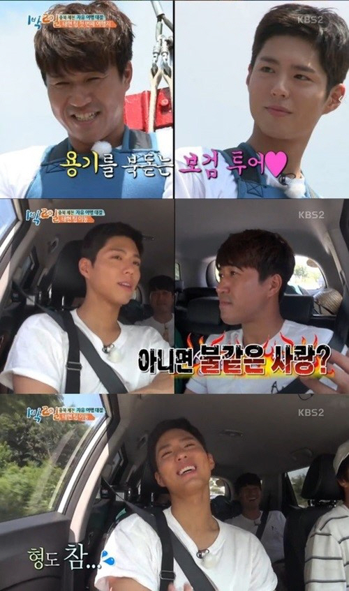 강탈했다. 박보검의 '매직'효과로 인해 고소공포증인 김종민은 '1박 2일' 9년 만에 액티비티 체험으로 공중 놀이기구를 탑승했는데, 박보검은 김종민이 꽁무니를 빼려고 할 때마다 "추억이잖아요"라고 사슴 같은 눈망울을 반짝여 시청자들을 웃게 만들었다.
