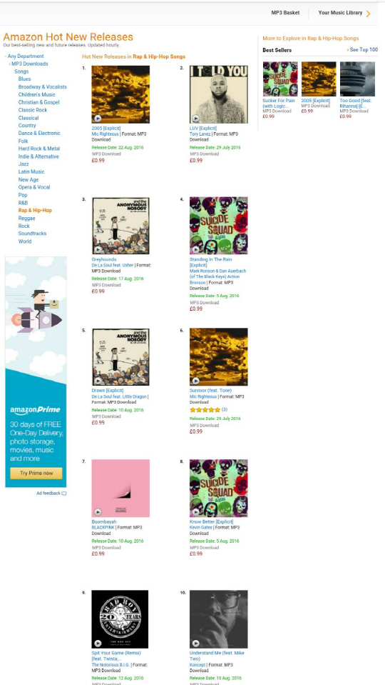 오늘(23일, 한국시각) 오후 2시 기준, 블랙핑크의 데뷔 싱글 앨범 'SQUARE ONE' 더블타이틀곡 '붐바야'는 영국 아마존 'Rap & Hip-Hop' 'Hot New Release' 차트 7위에 이름을 올리며 글로벌 영향력을 과시했다.