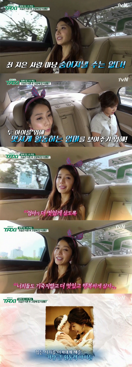 이어 오승은은 "(이혼 때문에)죄지은 사람처럼 숨어살 수는 없다. 두 아이를 위해서라도 멋지게 활동하는 엄마를 보여주겠다"면서 "이루고자 하는 꿈은 서울에 있다. 하루빨리 아이들을 데려 오고 싶다. 아이들을 생각하면 마음에 돌덩어리가 있다"고 기어코 눈물을 쏟았다.