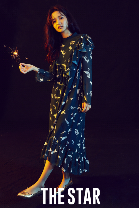 <더스타> 9월호의 메인 화보를 장식한 김태리는 몽환적인 여배우의 얼굴을 선보였다. 공개된 사진 속 김태리는 어두운 배경에서도 빛나는 미모와 포스로 시선을 사로잡았다. 특히 올가을과 어울리는 니트와 러플 원피스, 섹시한 리본 힐과 패턴 앵클부츠 등의 아이템으로 여성스러운 룩을 소화해 가을 분위기를 물씬 풍겼다.