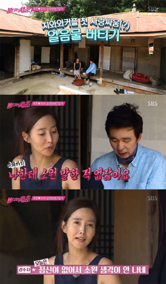 23일 방송된 SBS '불타는 청춘'에서는 공개연애 1일 차 김국진, 강수지 커플의 알콩달콩한 열애가 그려졌다.
