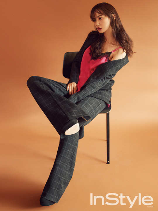 이날 촬영장에서는 전문 모델 못지않은 완벽한 포즈와 오라를 내 뿜으며 주위 스태프들의 극찬을 받았다. 특히 섹시한 분위기의 슬립에 클래식한 체크 수트를 믹스 매치해 고혹적인 분위기를 연출하며 성숙한 면모를 드러내 화제가 되기도. 그녀가 직접 스타일링한 매력적인 가을 믹스매치 스타일링 화보는 인스타일 9월호에서 만나볼 수 있다.