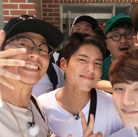 사진 속 김준호와 박보검은 나란히 얼굴을 맞댄 채 환한 미소를 짓고 있는 모습. 두 사람은 친형제처럼 다정한 모습으로 시선을 사로잡았다. 또 김준호는 박보검과 '1박 2일' 멤버들이 찍은 사진도 공개했다. 김준호, 윤시윤, 데프콘과 나란히 선 박보검은 압도적인 꽃미모를 뽐내 눈길을 사로잡는다. 박보검과 함께 '1박 2일'에 게스트로 출연한 김준현도 깨알같이 등장해 눈길을 끈다.