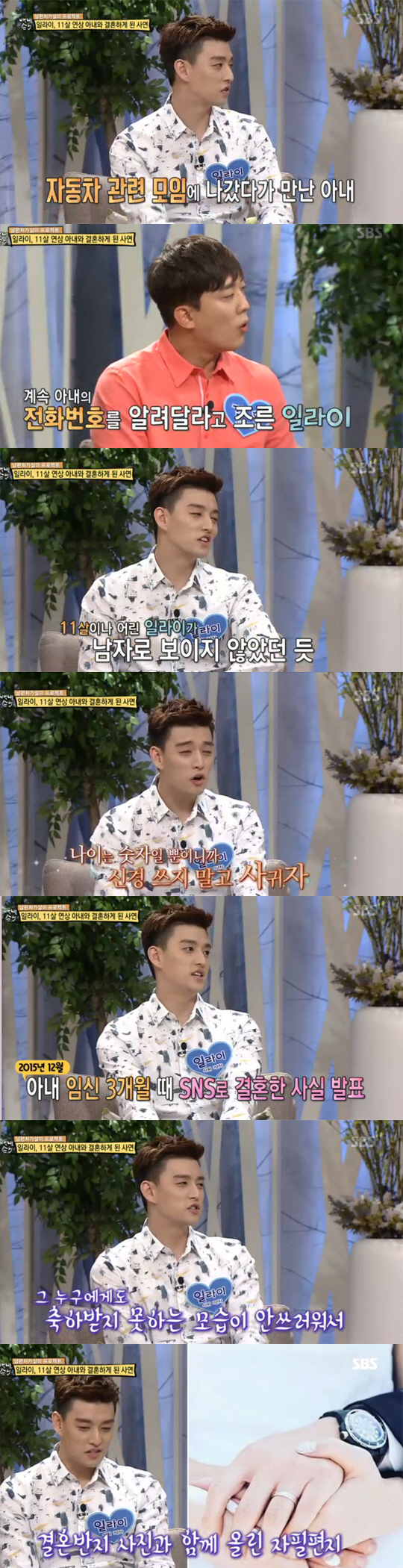 '스스로 SNS에 결혼 사실을 밝혔다던데'라는 질문에 일라이는 "2015년 12월에 직접 공개했다"며 "아내가 임신 3개월일 때다. 임신해서 힘든데 결혼 사실도 숨겨야하고, 축하받지도 못하는게 안쓰러웠다"고 설명했다.