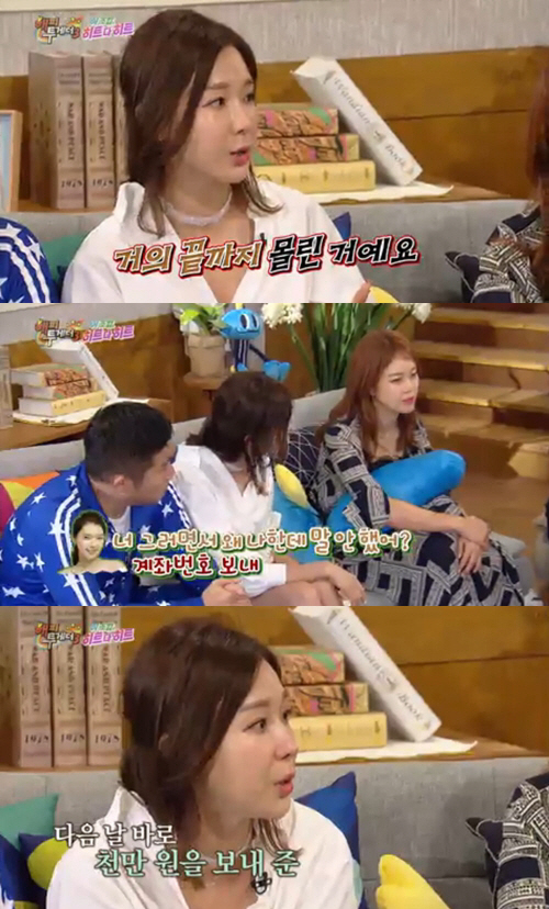 '해피투게더3' 가수 이지혜가 생활고로 힘들었을 당시 도와준 채정안에게 고마움을 표현했다.