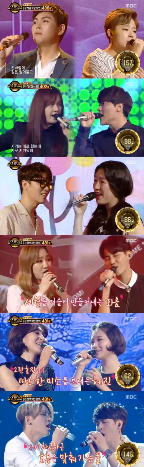 한편 이날 '다시 보고 싶은 듀엣'으로는 강성훈-장지현 팀과 유성은-정윤돈 팀이 청중평가단의 선택을 받아 다음 주에도 한 번 더 출연할 기회를 얻었다.