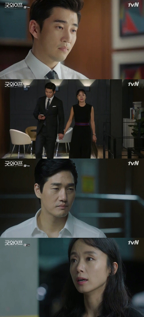 26일 밤 방송된 tvN 금토드라마 '굿와이프'에서는 김혜경(전도연)과 서중원(윤계상)의 관계에 폭주하는 이태준(유지태)의 모습이 그려졌다.