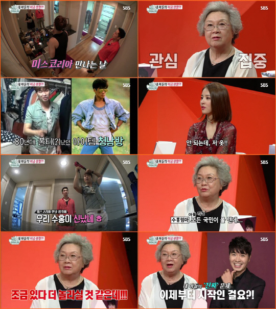 그 중에서도 정규 편성에 합류한 '국민신사남' 박수홍의 모습이 '최고의 1분'을 기록했다. 특히 친구들과 밤문화를 즐기러 준비하는 모습에서 시청률이 10.6%까지 치솟았다. 박수홍의 가식없는 사생활과 그 모습을 처음 본 수홍엄마의 안절부절하는 모습이 이번 주의 꿀잼 포인트였다. 하루종일 티비에서 눈을 떼지 못하는 아들을 보고 애잔한 마음이 들었던 수홍 엄마. 하지만 밤이 되자 박수홍은 미스코리아를 만나러 갈 생각에 단장을 하고, 친구들과 클럽으로 향하는 모습을 보고 "저런 모습 처음 본다. 방송에 나갈 수 있냐?"며 당황한 기색을 감추지 못했다. 특히 아재들의 공통적인 고질병인 '복고풍 패션'이 웃음을 자아냈다. 한껏 차려입은 80년대 전영록 스타일의 의상을 보고 MC 한혜진마저도 "저러면 안될텐데… "라며 속마음을 드러내 보는 이들로 폭소를 자아냈다.