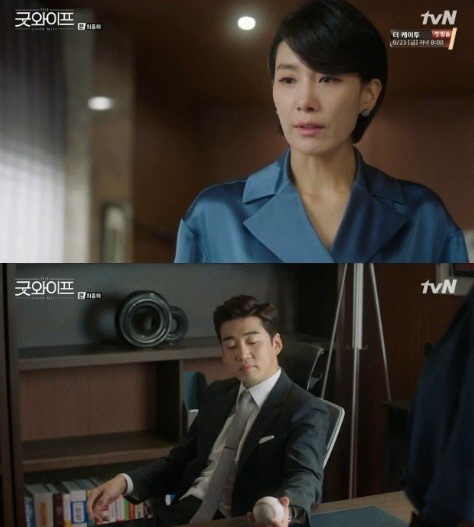 27일 방송된 tvN 금토드라마 '굿와이프' 마지막 회에서는 김혜경(전도연)이 뇌물 수수 혐의를 받고 있는 서중원(윤계상)의 변호를 맡으며 남편 이태준(유지태)과 맞서는 내용이 전타를 탔다.