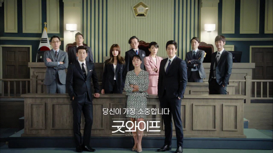 지난 27일 오후 8시 30분에 방송된 '굿와이프' 최종회는 케이블, 위성, IPTV 통합 가구 시청률 기준 평균 6.7%, 최고 8.5%까지 치솟으며 전편 16회 연속 케이블 종편 포함 동시간대 1위를 기록했다. 프로그램의 주요 타겟인 2049남녀 시청층에서 평균 3.1%, 최고 4.1%를 기록했으며, 남성 30대부터 50대까지, 여성 10대부터 50대까지 전 연령층에서 모두 동시간대 1위를 기록했다.