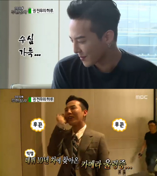 권지용은 "데뷔후 한번도 이런거 해본 적이 없다. 무한도전 팬이니까 한다고는 했는데 난 전에 한 무한상사 같은건 줄 알았다"라며 진땀을 흘렸다.