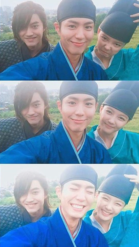 공개된 사진에는 드라마 '구르미 그린 달빛'에 출연 중인 배우 김유정, 박보검, 곽동연의 모습이 담겨있다. 카메라를 향해 환한 미소를 지어보인 세사람은 선남선녀 비주얼을 뽐내 시선을 모은다.