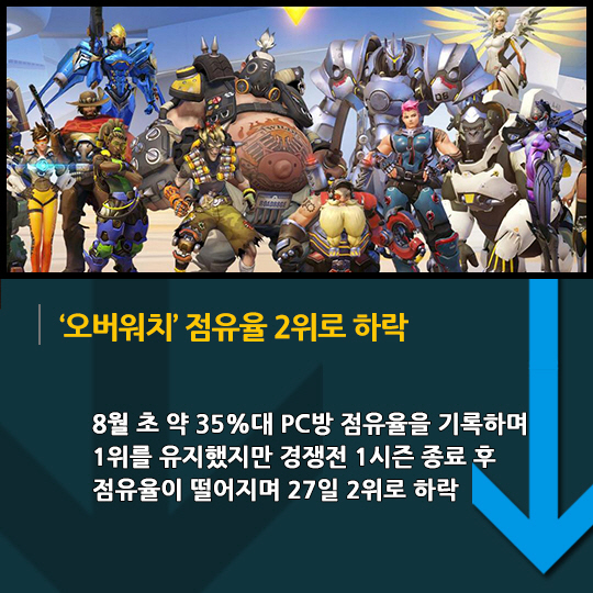 8월 초 약 35%대 PC방 점유율을 기록하며 1위를 유지했지만 경쟁전 1시즌 종료 후 점유율이 떨어지며 27일 2위로 하락