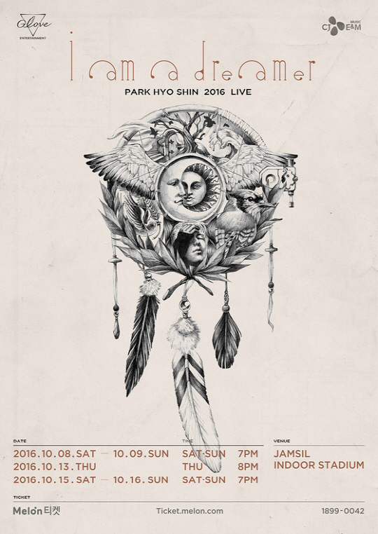 또한 이번에 공개된 콘서트 포스터에는 '아이 엠 드리머'라는 공연 타이틀과 함께 날개, 나무, 달과 태양 등 각종 상징물로 이뤄진 박효신만의 '드림캐쳐' 이미지를 담아내 더욱 기대를 모으고 있다.