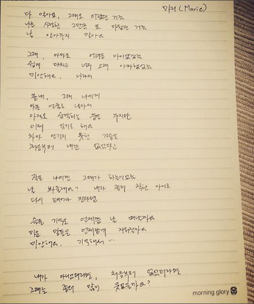 지난 7월 호란이 진행하는 SBS 라디오 '호란의 파워FM'생방송에서 깜짝 선공개한 이 곡은 사랑하는 이와 이별한 소녀의 마음을 담아낸 절절하고 진솔한 가사로 호평받았다. '끝내 그대 나에게 아픈 얼굴로 남아서 아직도 숨막히는 꿈을 꾸지만 이제 잊기로 해요. … 슬픈 기억은 언제쯤 날 떠날까요. 미운 말들은 언제쯤에 지워질까요. 미안해요… 기억해서… 내가 아니었더라면 처음부터 없었더라면 그대는 좀더 많이 웃었을까요'라는 애절한 가사에는 어긋난 인연과 진한 이별의 아픔이 담겨 있다. 호란은 당시 이 자작곡에 대해 "'마리'라는 소녀에 대한 얘기다. 우리 모두 사랑받고 싶어하는 심리가 많다. '마리와 나'에는 사랑받고 싶었던 사람, 사랑받고 싶었던 소녀에게 건네는 말이 담겨 있다"고 설명했었다.
