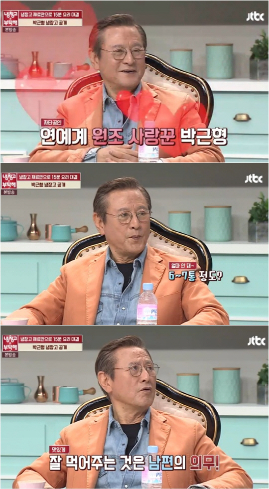 지난 29일 방송된 JTBC '냉장고를 부탁해'에서는 57년차 배우이자 최연장자 게스트 박근형이 출연했다. 냉장고에는 박근형을 위한 아내의 사이 담긴 음식과 여러 재료들이 가득했다. 그런 냉장고를 소개하면서 박근형의 '사랑꾼' 면모도 자연스럽게 드러났다.