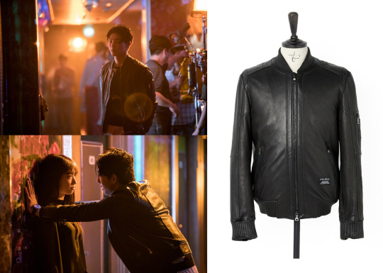 SBS '닥터스'에서 배우 지수가 가죽 블루종을 착용한 모습이다. 느와르라르메스 제품