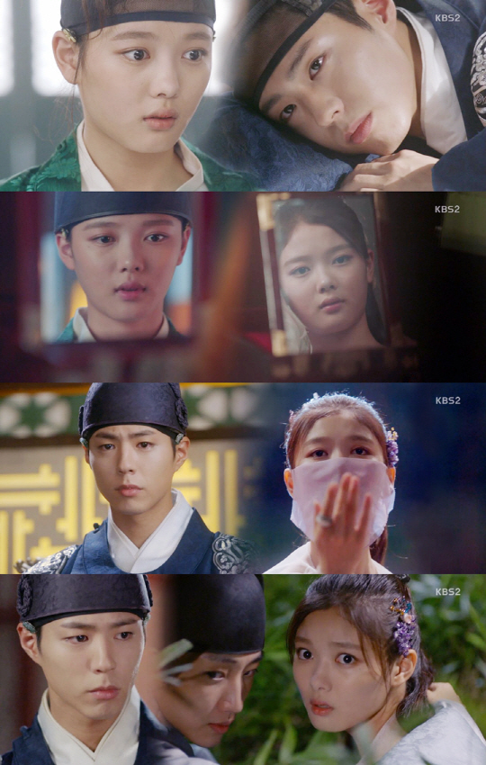 하지만 영의 옆에서 함께하는 시간이 길어질수록, 아름다운 여인의 한복에 눈을 떼지 못하는 천생 여자 라온의 마음도 변해갔다. 자신에게 이불을 내어주고 책상에 엎드려 잠이 든 영의 얼굴을 빤히 바라보다 미소를 지었고, 잠에서 깬 나른한 얼굴로 피식 웃으며 머리를 헝클어뜨리는 그의 손길에 설렘을 감추지 못했다. 화초 세자라며 놀리던 그에게 제대로 '심쿵'하고야 만 것.