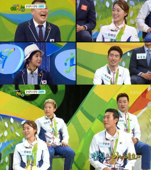 이날 방송에서는 '펜싱 영웅' 방상영을 비록해 양궁의 장혜진, 구본찬, 유도의 정보경, 사격의 김종현 등 리울올림픽의 영광의 메달리스트들이 총출동 했다. 리우올림픽이 폐막한 이후 올림픽 메달리스트들이 예능 프로그램에 제대로 출연하는 것은 '우리동네 예체능'이 처음 이었지만 그렇다할 이슈나 화제를 만들어내지 못해 아쉬움을 자아낸다.