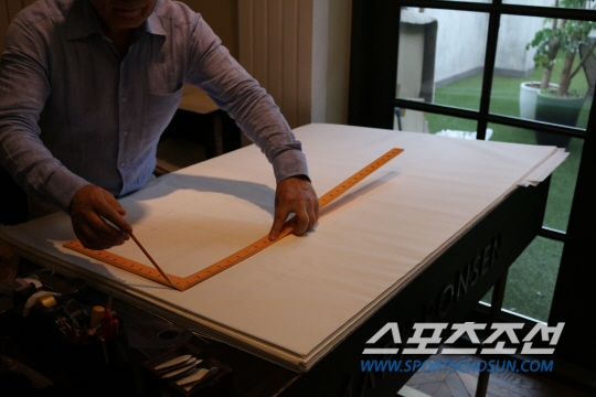 비접착식 핸드 메이드 수트는 시작은 줄자다. 줄자로 고객의 신체를 낱낱이 측정해 최고의 착용감, 최고의 형태를 그려낼 준비를 한다. 이 측정 작업에 가장 중요한 점은 경험. 어깨 너비가 같은 두 남성이라도 견갑골이 돌출 되었는지, 일자로 펴졌는지와 같은 세세한 차이를 포착해 도면에 그려낸다. 이영득 대표의 "테일러의 노하우, 경험을 통해 고객의 체형을 분석해야 하기 때문에 테일러가 직접 측정해야 한다"라는 말처럼, 신체 측정은 테일러의 능력이 중요시되는 작업이다.