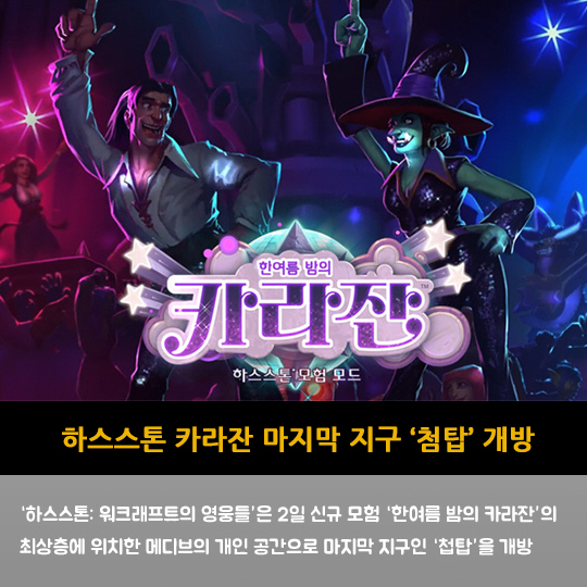'하스스톤: 워크래프트의 영웅들'은 2일 신규 모험 '한여름 밤의 카라잔'의 최상층에 위치한 메디브의 개인 공간으로 마지막 지구인 '첩탑'을 개방