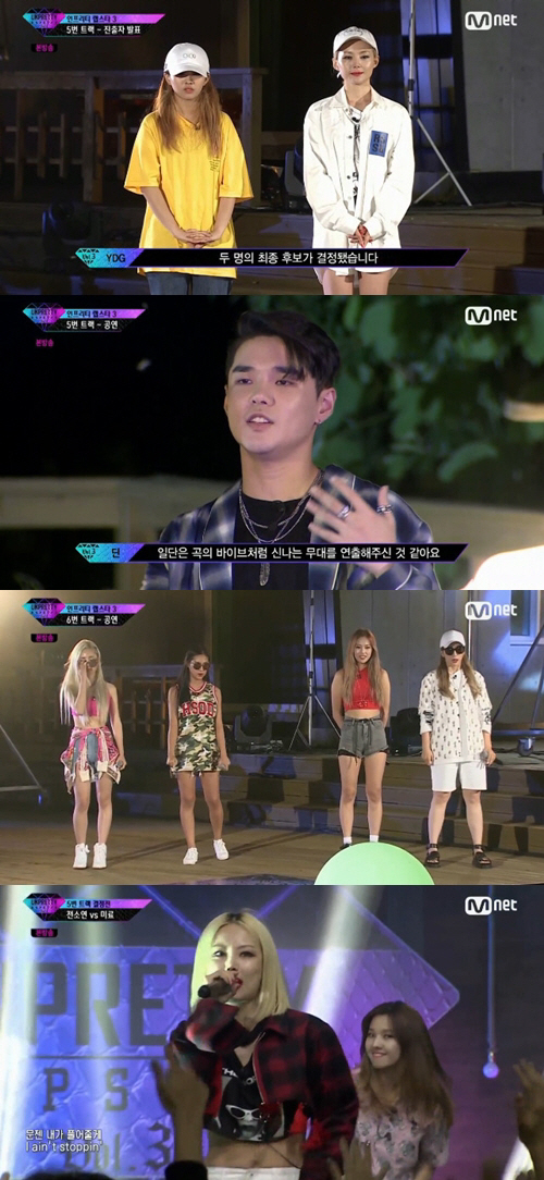 2일 밤 방송된 Mnet '언프리티 랩스타3'에서는 천재 싱어송라이터 딘이 프로듀서로 나선 가운데 5, 6번 트랙을 두고 경쟁하는 래퍼들의 모습이 그려졌다.