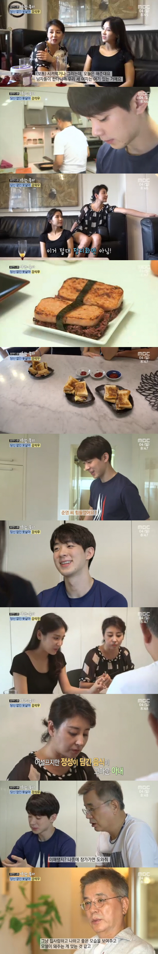 딸 강다은과 거실에 앉아 있는 강석우의 아내 나연신은 "토요일은 제가 부엌문을 닫는 날이다. (보통) 시켜먹거나 그러는데, 오늘은 해준대요. 남자들이 한다니까 여자들은 여기 있는 거다"고 설명했다.