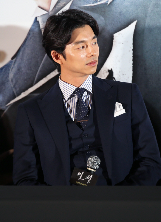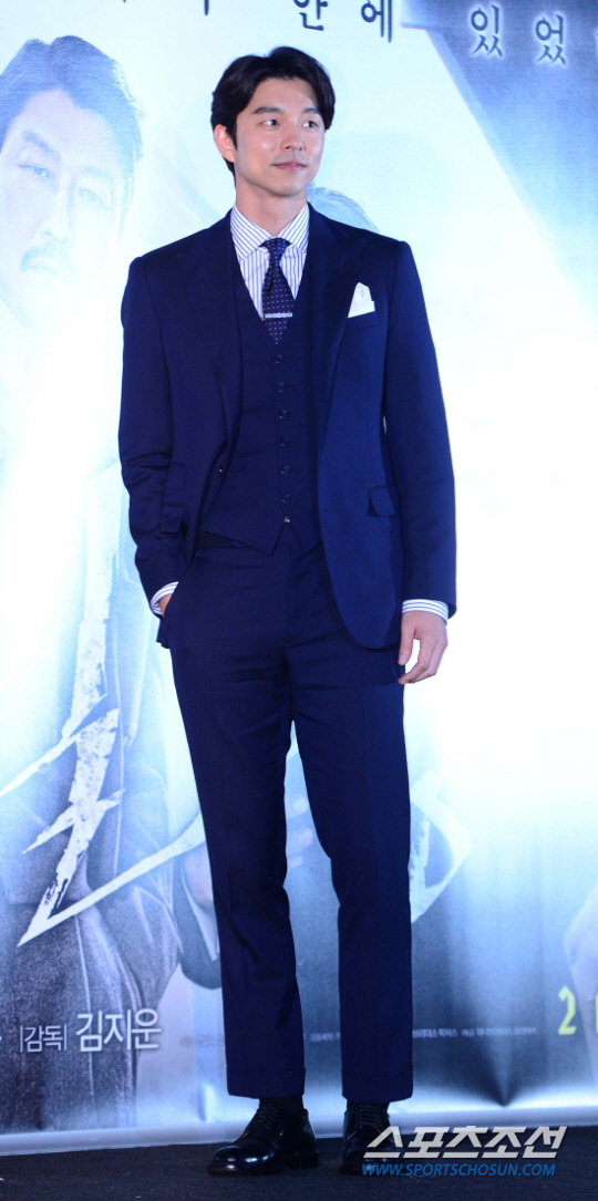 '밀정' 시사회에서도 공유는 영화 분위기에 맞게 정석 수트를 선택했다. 짙은 네이비 컬러의 수트를 입은 공유는 베스트까지 완벽하게 갖춰 입어 한 층 더 클래식한 분위기를 자아냈다.